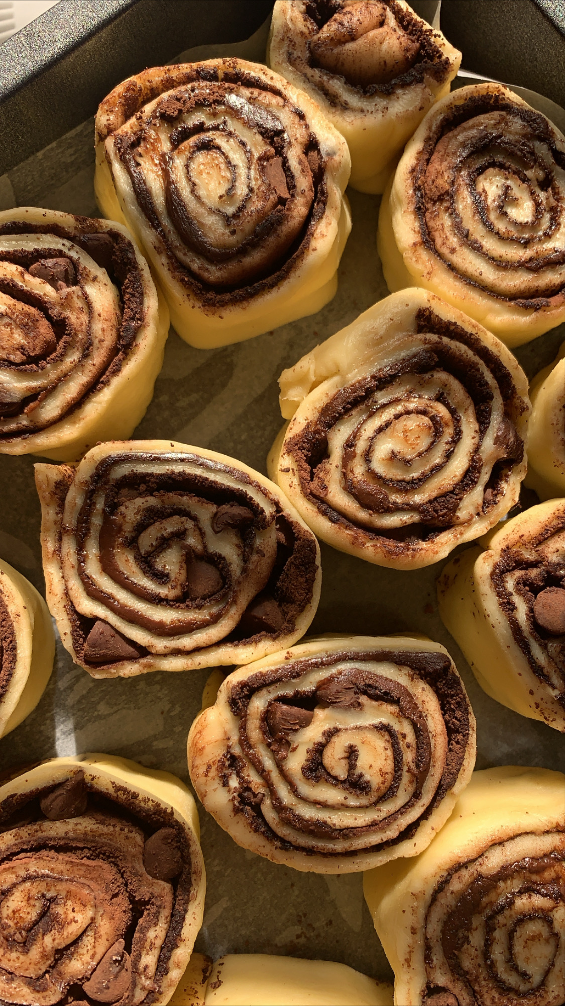 تلف وتقطع دوائر بسكين أو خيط أسنان ترص بصينية مدهونة زيت وتترك لترتاح ١٠ دقايق تخبز في فرن مسبق الفتح بنصف ساعة على حرارة ١٨٠ درجة في منتصف الرف