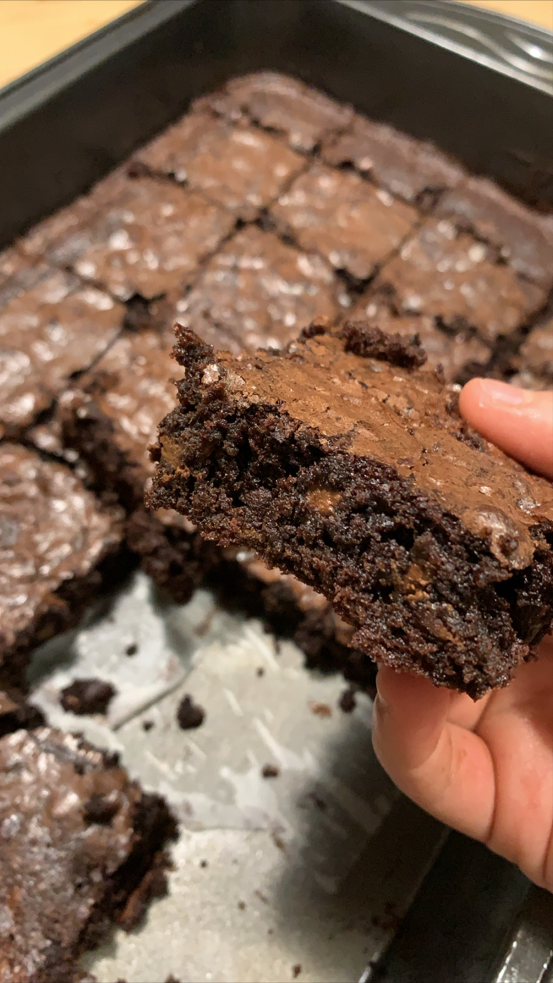 البراونيز يعتبر ناضج عندما تبتعد البراونيز عن أطراف القالب ونضع عود خشبي بالمنتصف ويخرج نظيف